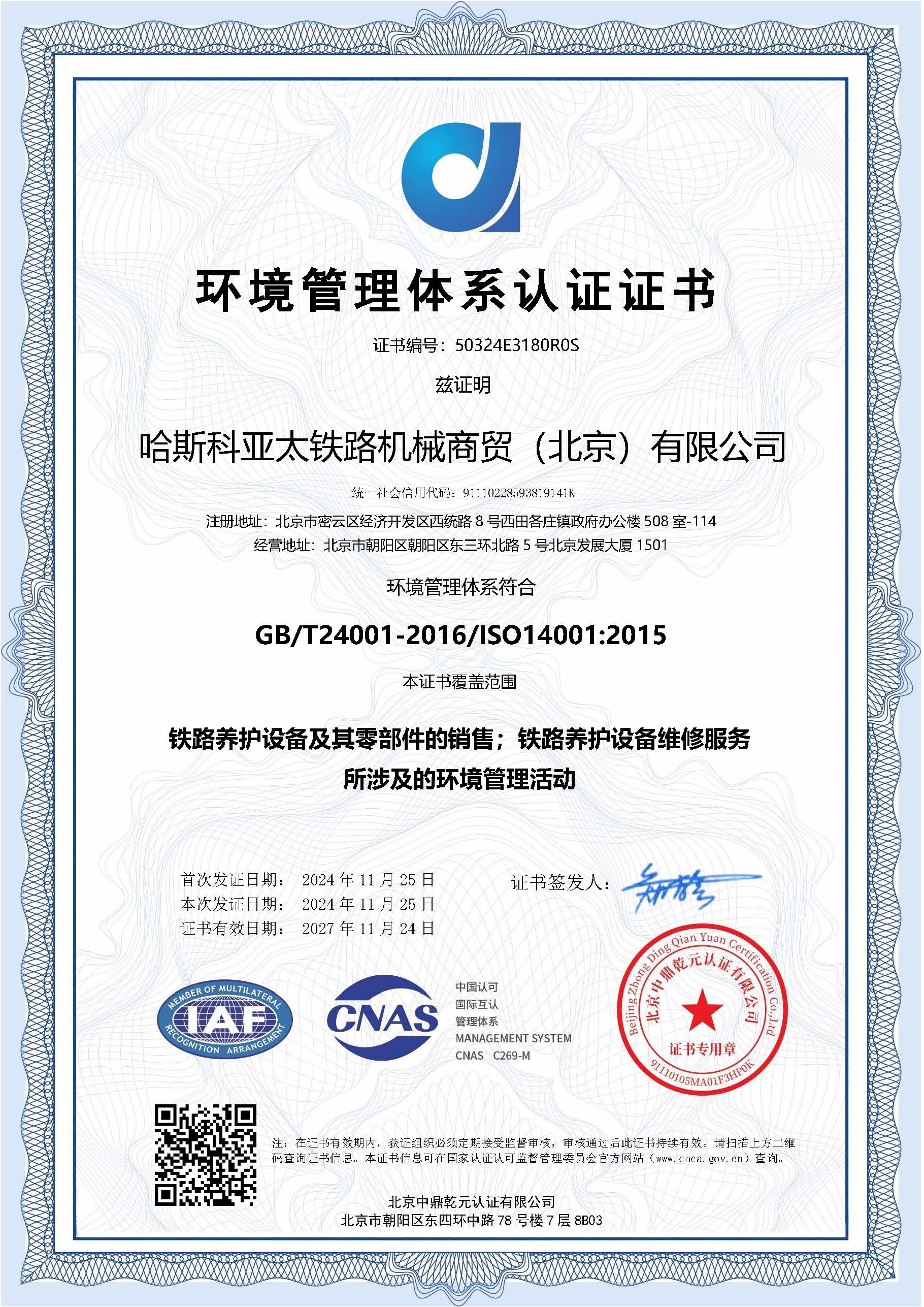 哈斯科鐵路公司符合國(guó)際通用的環(huán)境管理體系標(biāo)準(zhǔn),體現(xiàn)企業(yè)注重環(huán)境保護(hù)和可持續(xù)發(fā)展的理念,滿足法規(guī)要求與社會(huì)責(zé)任。